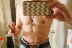 Lサイズのジーパンでもベルトをしないと脱げてしまう状態です。